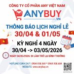 Kính gửi: Quý khách hàng và Quý đối tác Trong không khí hân hoan chào mừng ngày đại lễ của dân tộc, Công ty Cổ phần ANY Việt Nam xin gửi lời chúc sức khỏe, hạnh phúc và có một kỳ nghỉ lễ thật ý nghĩa bên gia đình đến toàn thể Quý khách hàng,…